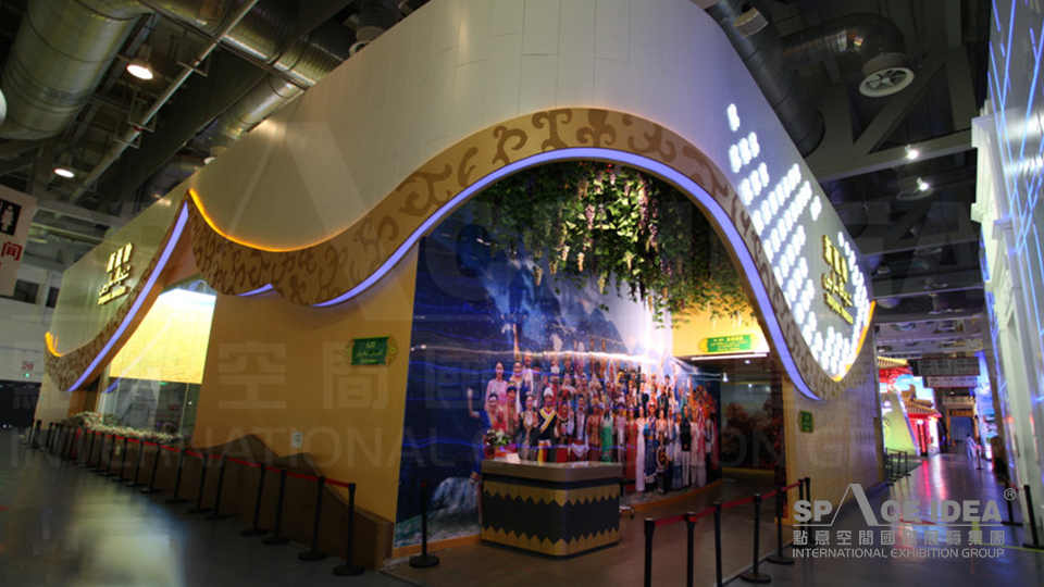 展会主题浓郁的维吾尔族的民族风情是新疆吸引游客的主要原因,新疆的人文景观悠久神秘,交河故城是世界上最大的古城遗址、艾提尕尔清真寺是全国最大的清真寺、坎儿井是中国古代三大工程之一等等。新疆的自然景观丰富多姿,最著名的火焰山、喀纳斯湖、天山天池、那拉提大草原、乌尔禾魔鬼城、卡拉库里湖、等等。人文景观和自然景观的丰富使成为一个具有浓郁地方特色的地区,那么作为世博会的新疆馆,需要把这些特点意义容纳,让新疆馆不仅富有强烈的视觉冲击力,还要有深厚的文化内涵,凸显了“新疆是个好地方”这个场馆主题。