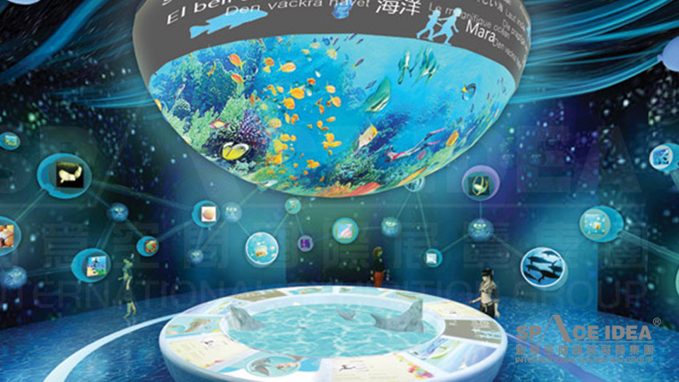 通过中华白海豚球幕影像互动装置和海洋环境暨生态保护二大展项讲述中国在海洋和海岸开发与保护方面做出的努力及取得的成功经验,最终引起参观者的思考。