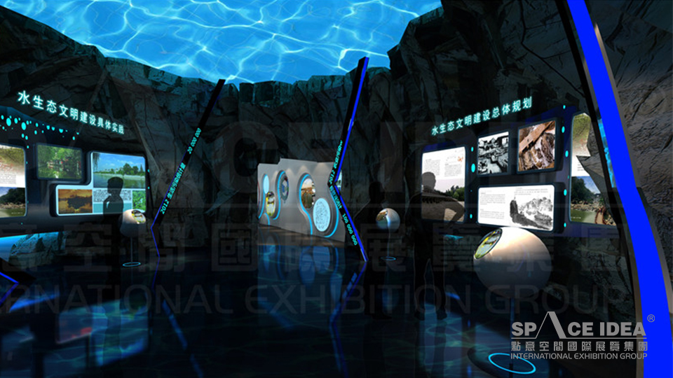 点意空间围绕“水润扬州”的主题,打造“水润扬州展馆”。以“水”为元素,以时间轴为线索,纵观千年,展现人类与水生态的相依相存;从改造到善利到保护,再到适应自然、理解自然、尊重自然的过程,传递了“人水和谐”的美好愿景。