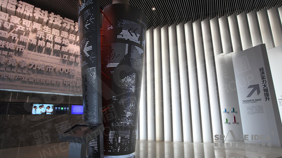 新余规划展览馆以其现代化的布展风貌,个性化的设计结构为其进行爱国宣传工作打造出了一个不可替代的展现手法。