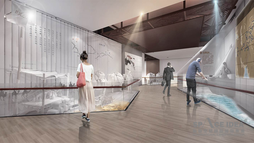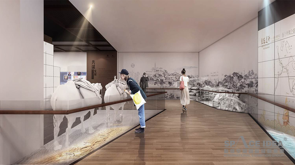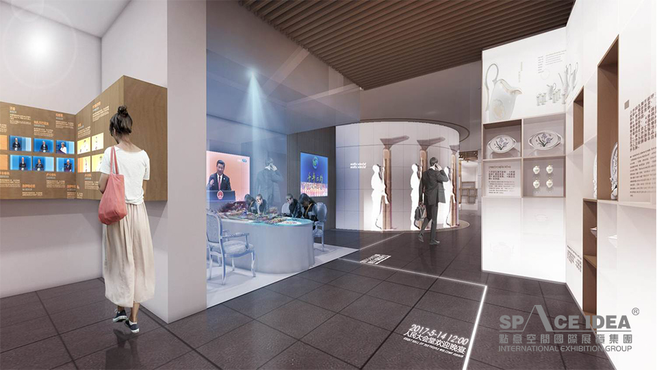 最终形成“国际会都——丝路文化——共谋发展——丰硕成果”的展示结构,响应主题策划方案,完成主题与内容之间的桥连。