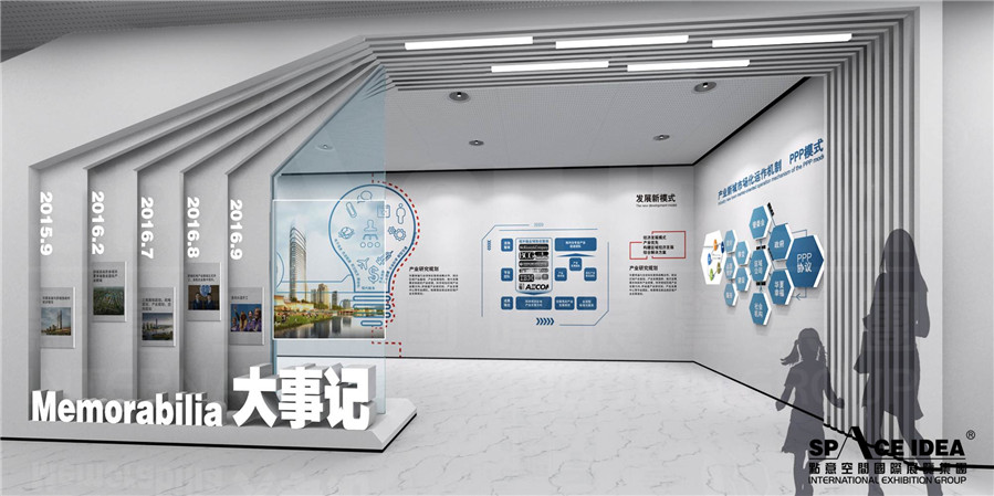 The planning hall takes pure and clear urban white to shape basic structure, integrates bright and rigorous with scientific and technological blue. Full vitality of green development packages, integrates, and describes a bright and happy blueprint for the future of Shucheng Hangbu industrial metro, which is suitable for living and working.