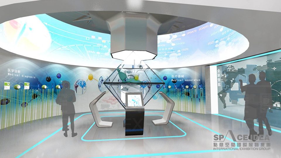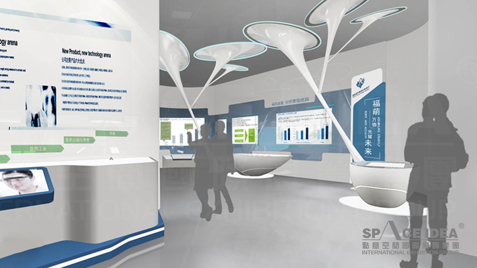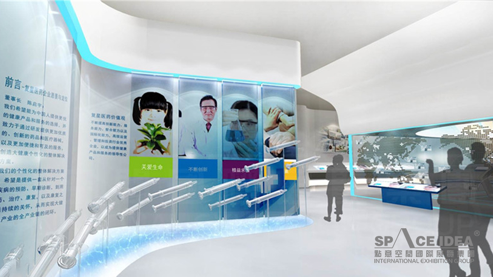 第一部分以“播种、发芽”为空间理念,设计造型,统一空间。通过图文、视频、互动触摸屏、实时数据更新等丰富的展示手段展现复星医药的企业文化及战略布局。