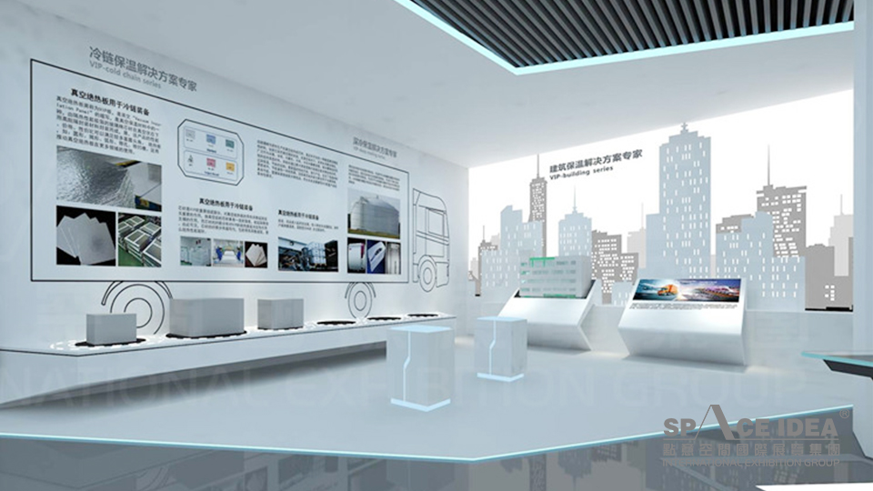 第二展示区:匠芯科技 点亮生活。通过维艾普保温仓所辐射的四大产业:交通、生活、冷链、建筑等方面,体现维艾普的匠芯科技(展馆的核心部分)。