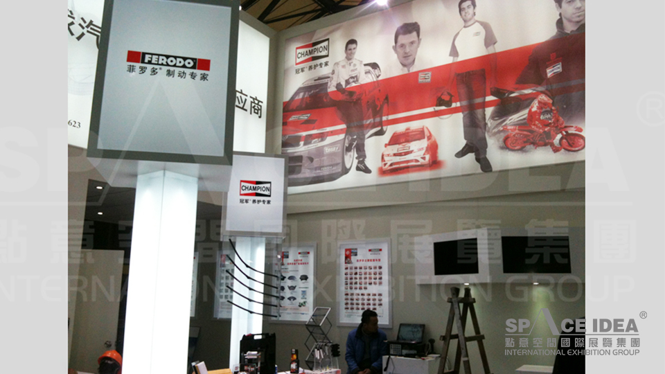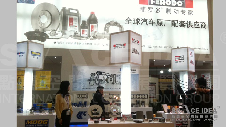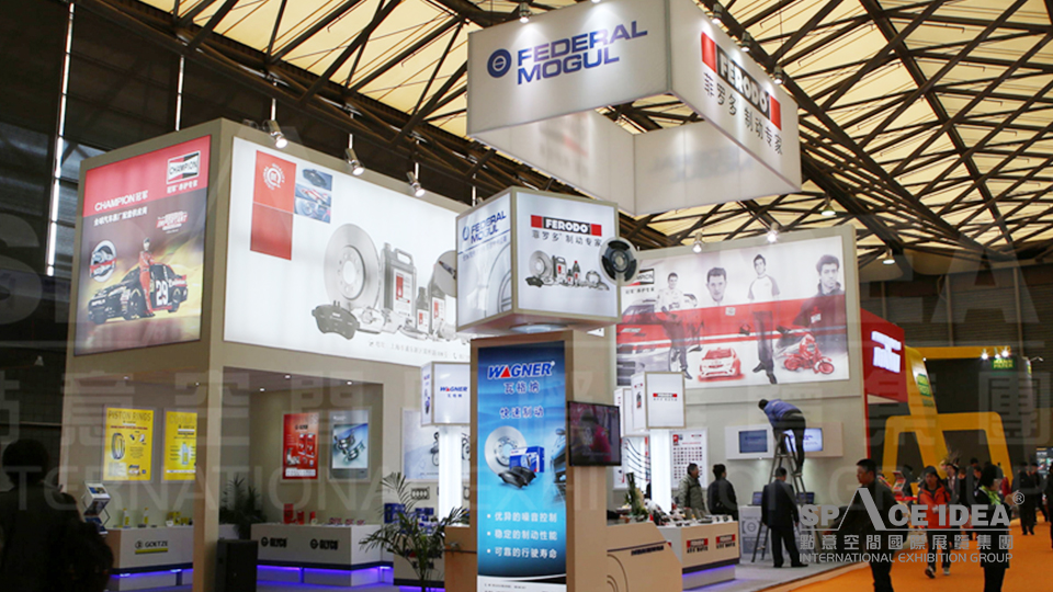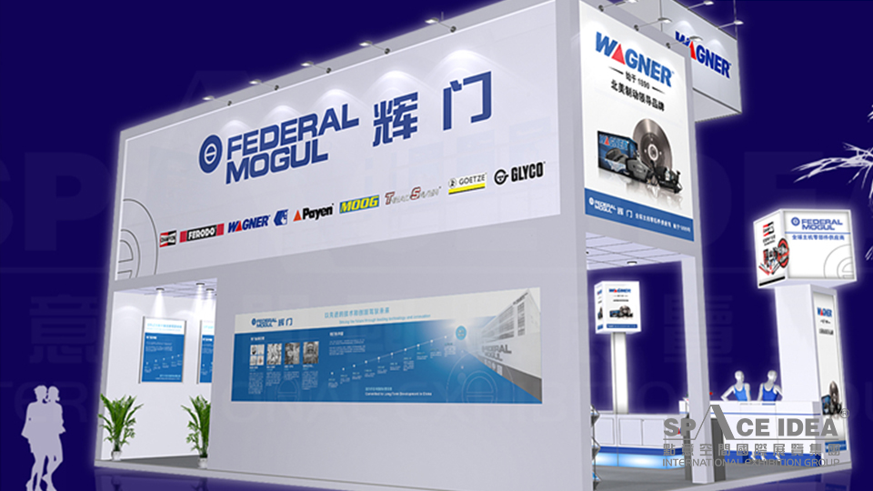 在顶部设置一个LOGO宣传吊点,进入展馆后即可遥望到辉门的展位所在位置。