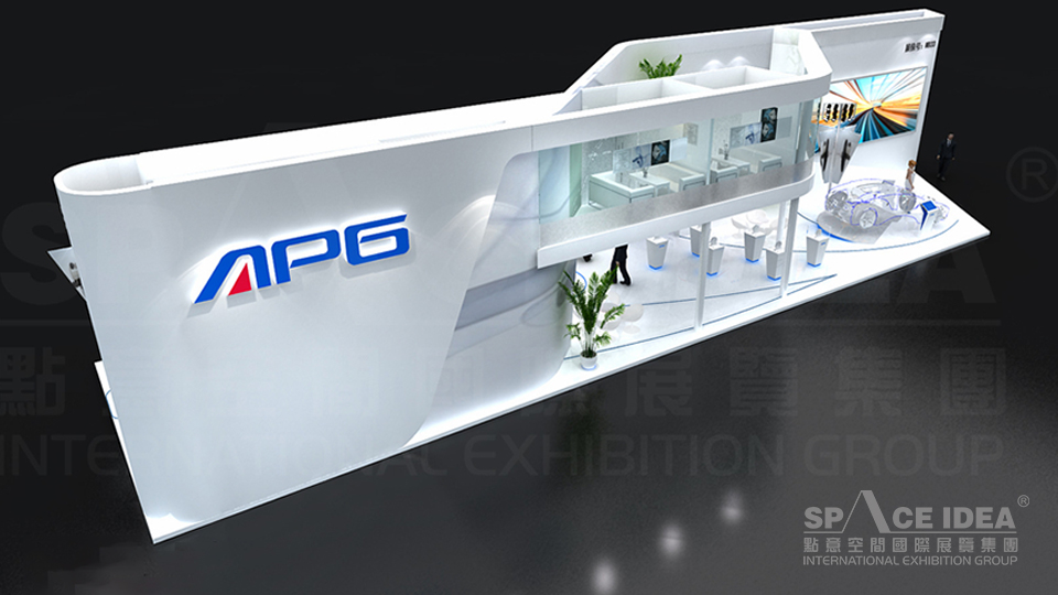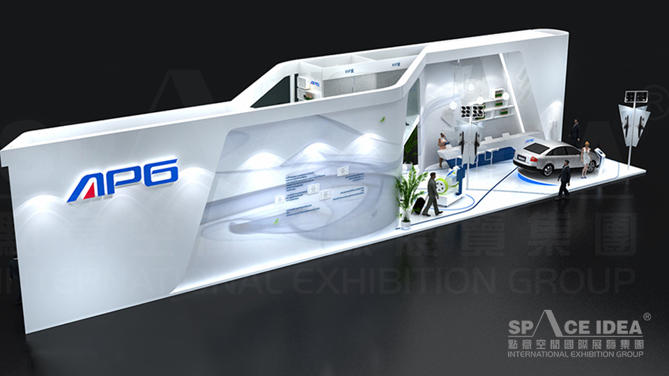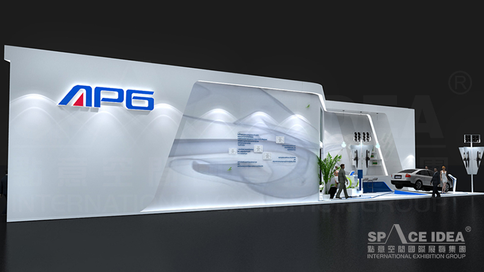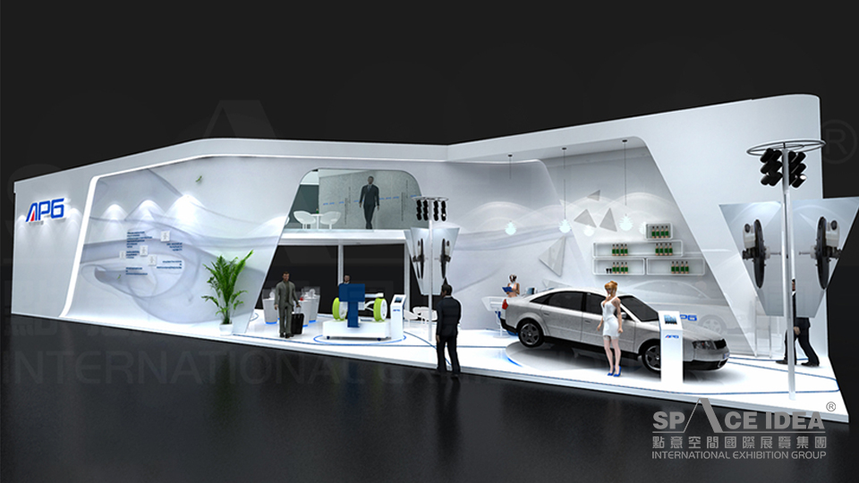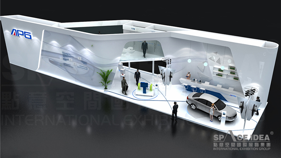 本案设计是一个现代酷炫风格的汽车展台,全空间以现代工业建筑材料为基础,内部功能合理明确,立面通透美具有很强的现代感,构成时尚、大气的空间主调。入口处的触摸式装置,可以增加观众游客体验的兴致;展台墙壁上的等离子显示器,播放亚太机电的宣传片,展示亚太各种车型的绝佳性能;展位上方是专业汽车展示灯和低温高亮度白光灯,可以将观众的视线聚焦到车身上。