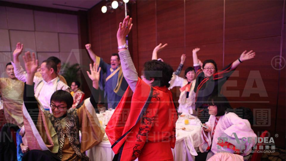 年会主题:赢在中国、Win in China 年会时间:2015年2月11日(周三) 年会地点:凯宾斯基酒店 年会内容:节目演出、互动游戏、抽奖 年会定位:时尚、典雅、欢快 现场布置:活动以“中国风”为主线,采用项目主体VI色调红色,搭配咖色、金色 互动方式:节目加游戏