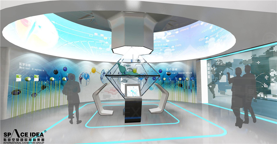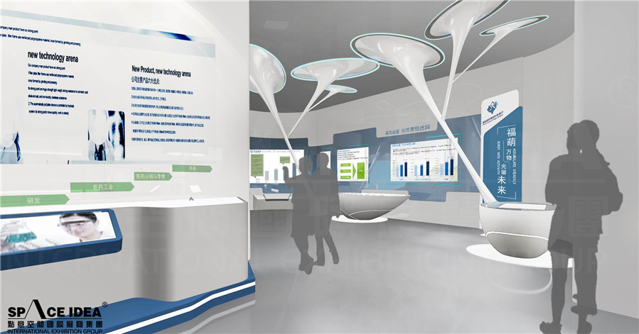 The first part takes "sowing and germinating" as the spatial concept, design modeling and unified space. Corporate culture and strategic layout of Fosun Pharmaceutical Group are showed by graphics and texts, video, interactive touch screen, real-time data update and other rich display means.