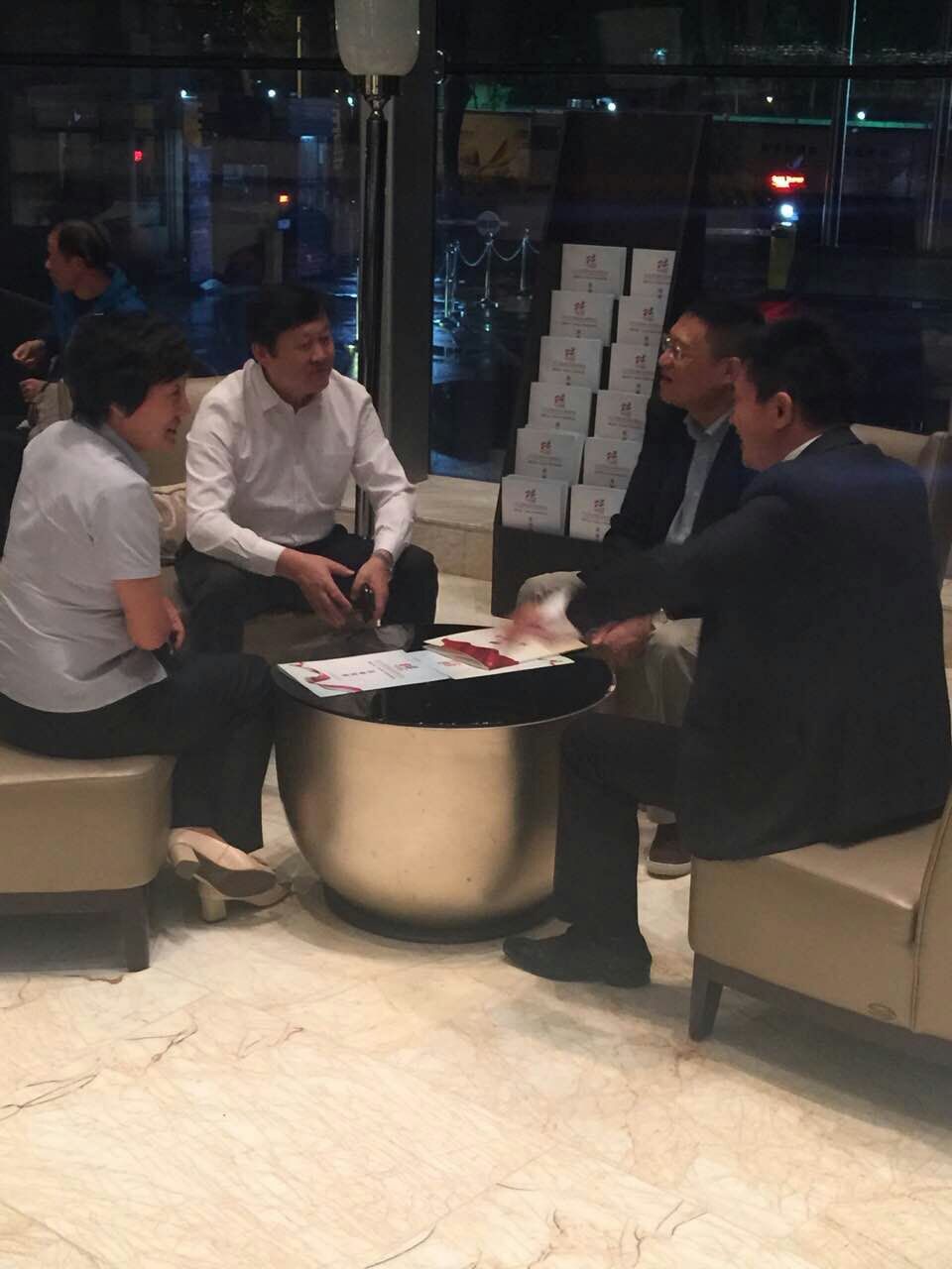 吕玉贵同上海会展行业协会陈先进会长以及振威集团总经理张学山就一带一路经济带和海上丝绸之路国家战略对2015亚欧商品贸易博览会上的重要论坛和活动的影响进行讨论,并就点意空间集团和新疆博览事务局政府共同成立混合经营制并公司举办博览会这以新的合作形态展开深度探讨。