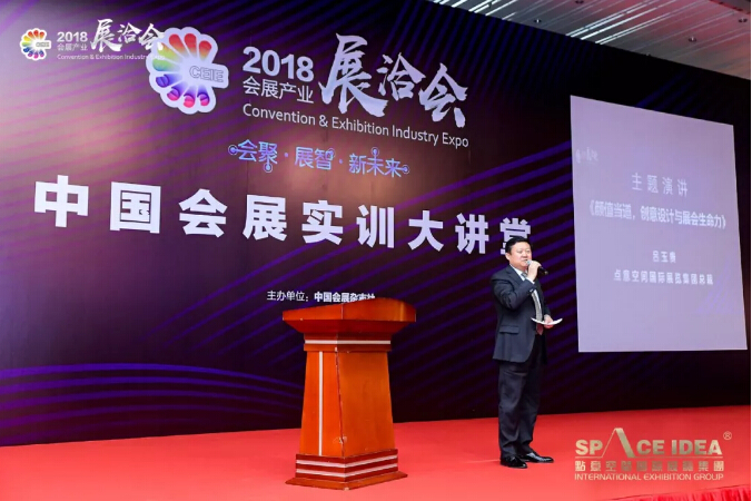 点意空间国际展览集团总裁吕玉贵先生(下图左一)作为剪彩仪式嘉宾之一出席此次活动,并应邀作为《中国会展实训大讲堂》的嘉宾,进行时长30分钟的“颜值当道,创意设计与展会生命力”主题演讲。