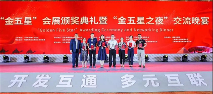 “金五星”颁奖典礼是第九届中外会展项目合作洽谈会的重头戏之一。作为我国会展业界最具影响力和权威性的奖项,该评奖活动秉承“树立行业榜样,促进行业发展”宗旨,对中国会展业中发展表现优秀、具有典型代表的场馆、企业、城市以及会展院校等进行表彰。目前,已成为我国最权威最专业的会展行业盛典之一,每年都得到国内外数十家媒体的关注与认可,并被誉为会展业的“奥斯卡”。